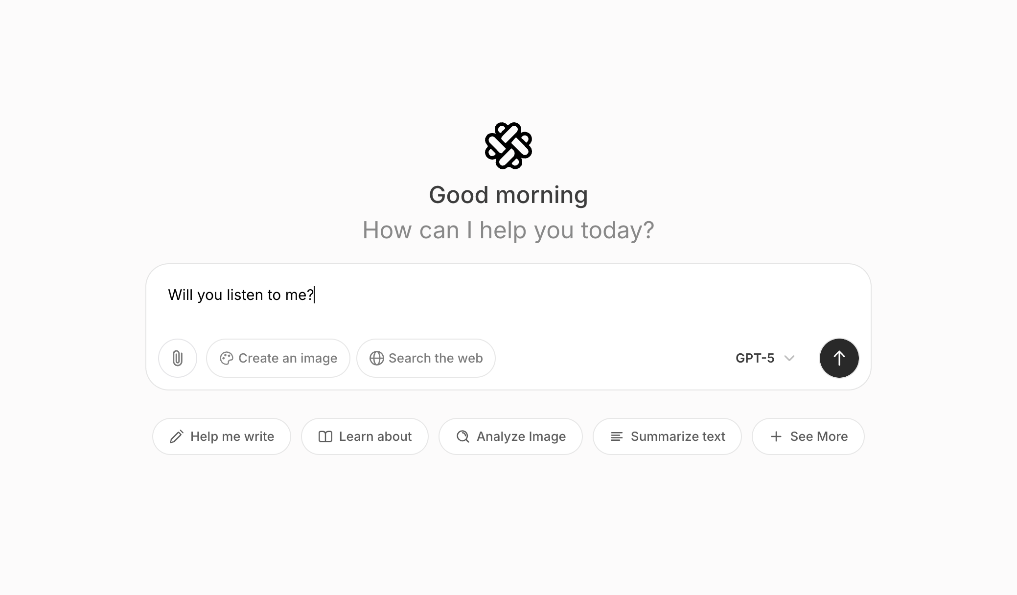 I was curious to experience the reality of ‘talking’ with ChatGPT and asked it some career advice. Being at a crossroads and lacking the finances for a personalised life coach, I wondered what AI might suggest. I was pleasantly surprised. The tone was friendly, encouraging, kind and complimentary. No wonder people are fond of it!