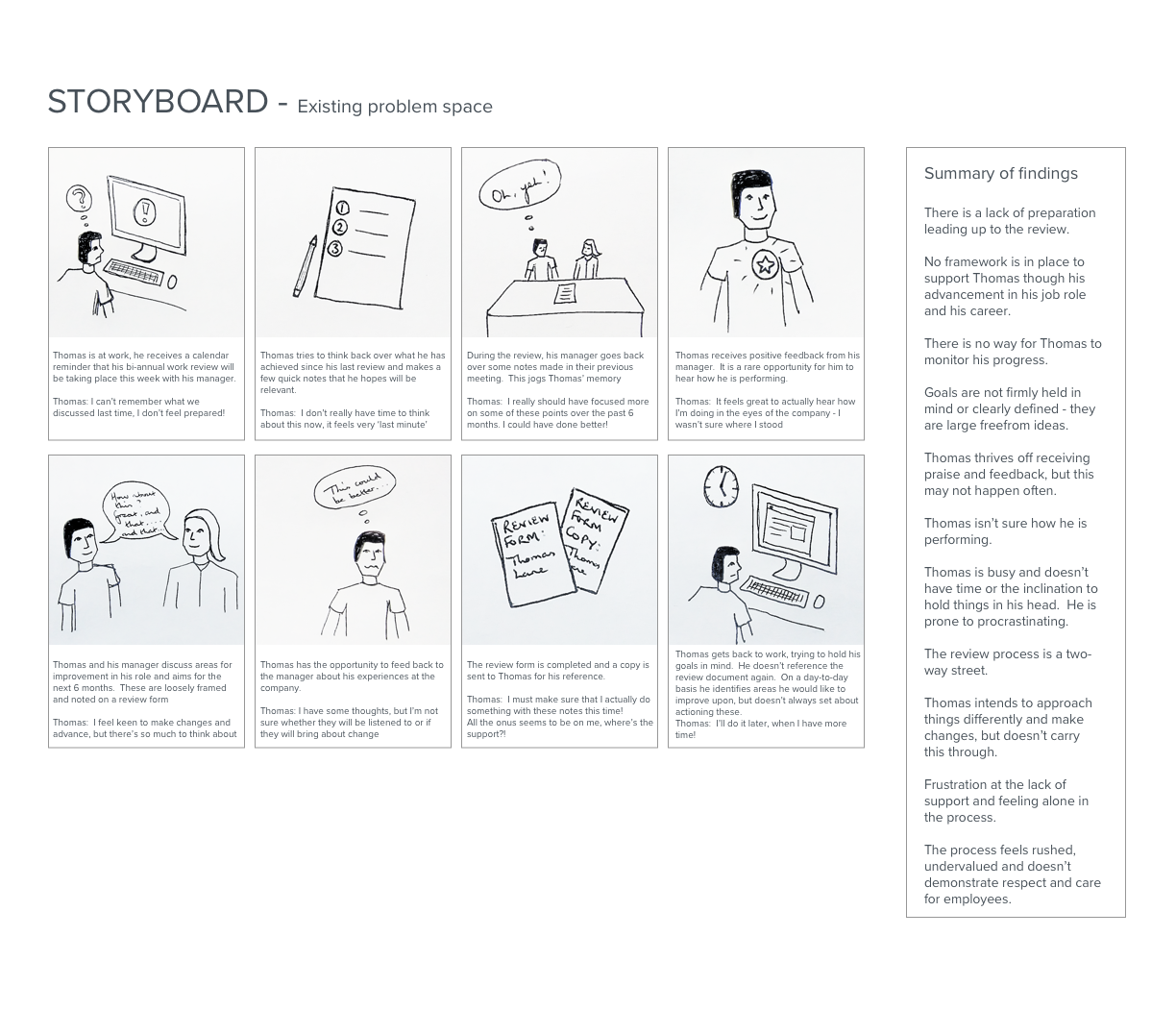 Collating all my thinking, analysis and research I pulled together a more thorough storyboard of the user journey, incorporating my suggested solution concept.