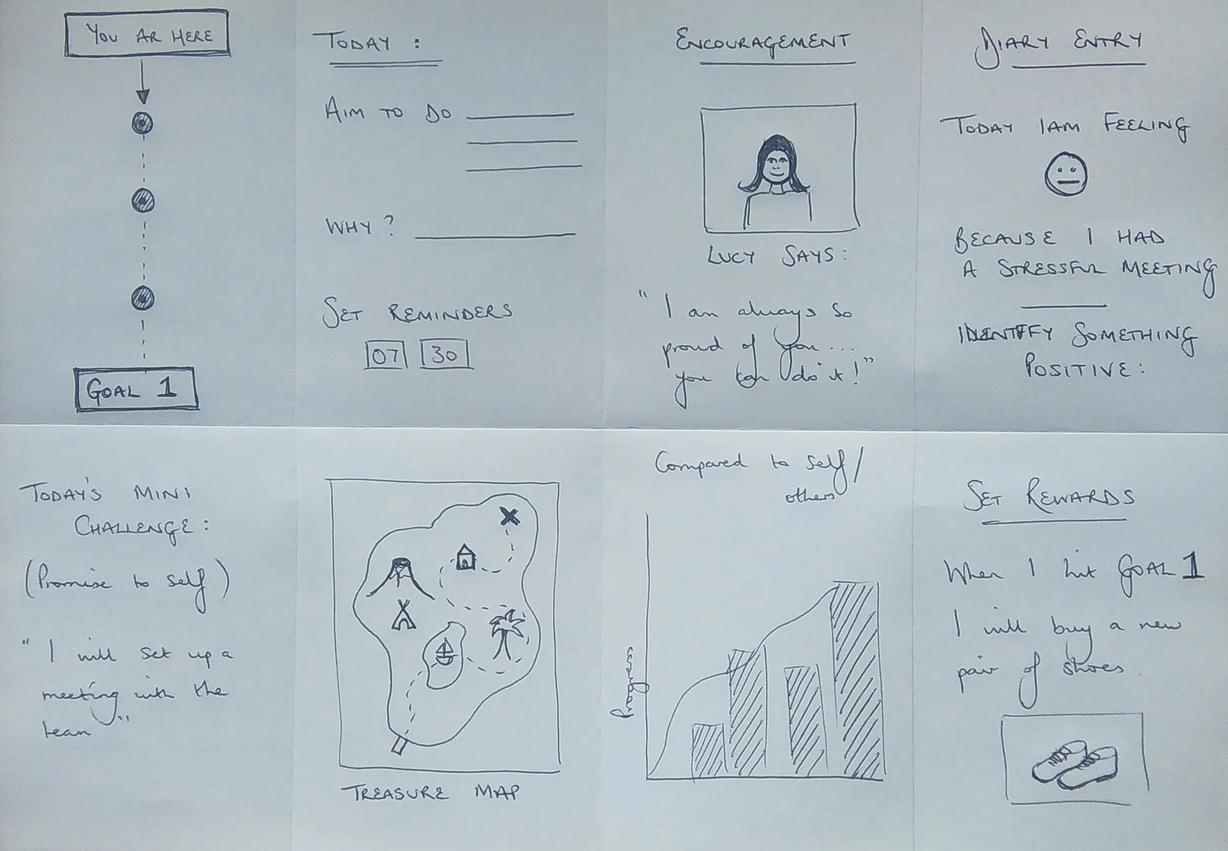 The brief called for me to generate ideas for a product that would encourage a specific user group to change their behaviour in order to achieve their goals. This would be heavily research driven and user-centered, to find an approach to tackling habit formation that would speak to the user and address their needs. My focus was on development in the workplace, goal setting and achievement in relation to appraisals and career trajectory.