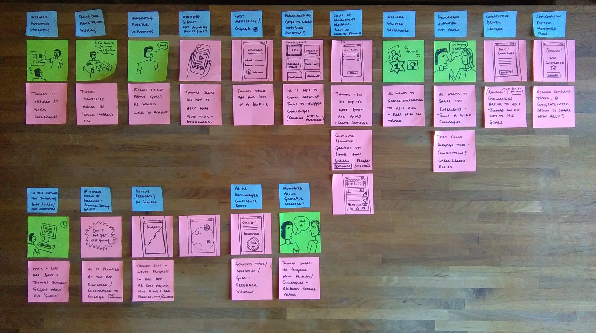 Re-visiting the user journey at this stage with the introduction of my potential solution prompted further thought about problem areas and the realistic user experience around the use of an app, which would be beyond my control. This was also a time to consider user thoughts and feelings at each touch point and think about how to adjust and adapt the journey and experience of the user to maintain engagement and enjoyment..